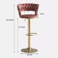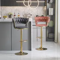 2PCSS/SET Rotatable Bar Stool Velvet High Bar Chair 360° Swivel Padded Seat with Backrest Footrest Counter Stool