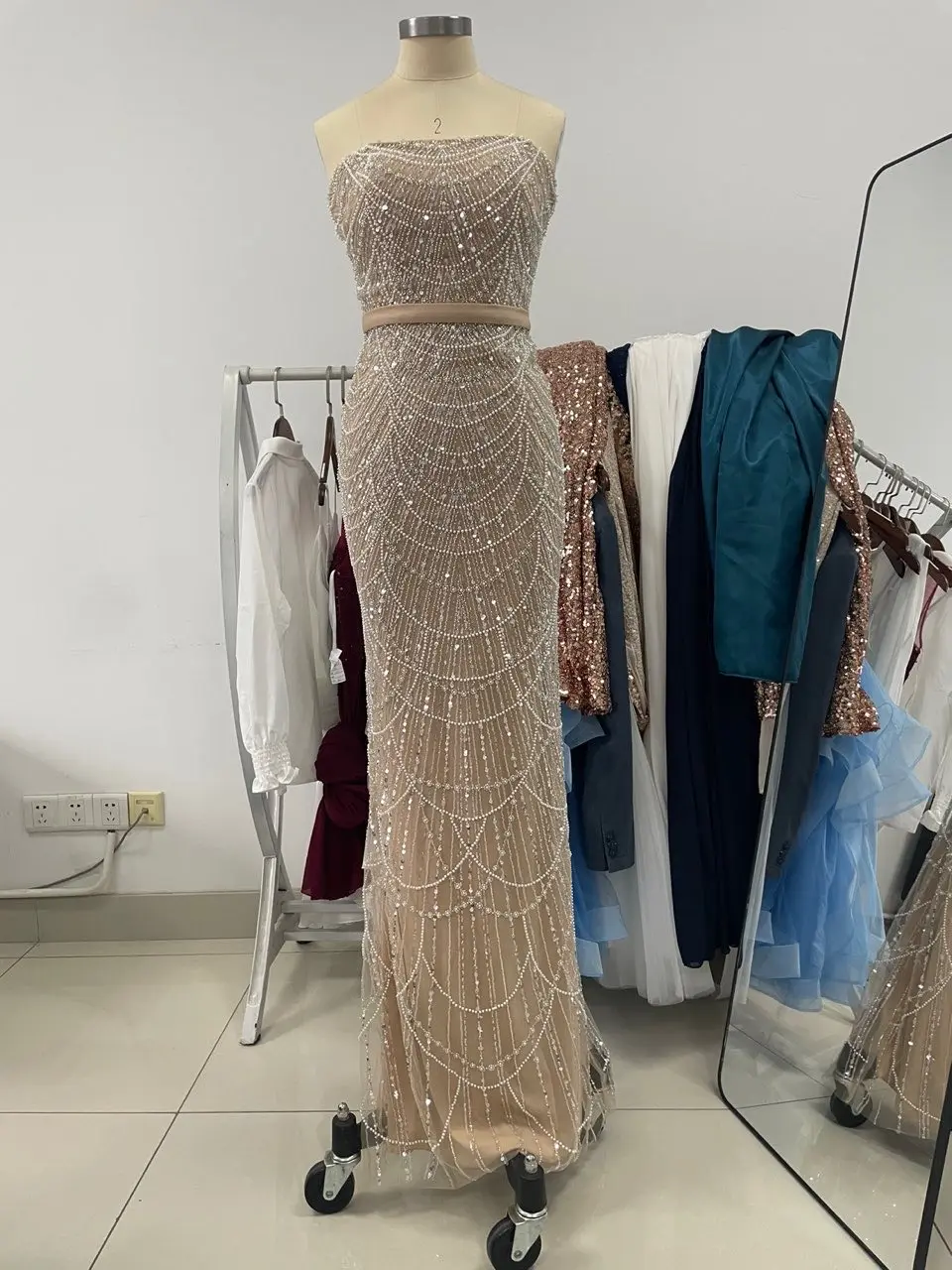 Be the first to review “Luxury Pearls Dubai Beds Champagne Evening Dresses with Cap Arabic Women Mermaid Wedding Party Celebrity Prom Dress” Cancel reply