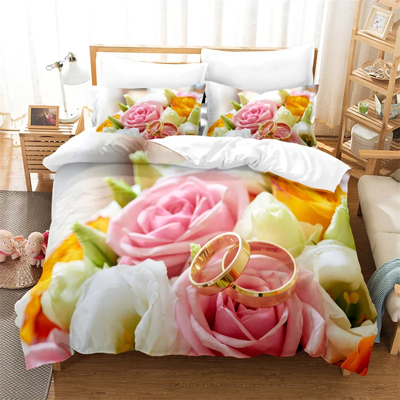 Luxury Rose Queen Bedding Set Duvet Cover Set Bedding Comforter Bedding Sets Bed Linen King Size Duvet Cover Bedding Set