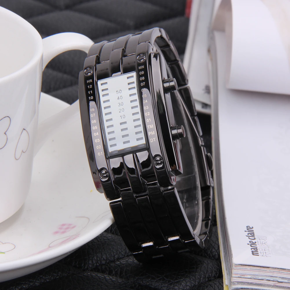 Men Watch Luxury Lover Wristwatch Waterproof Women Stainless Steel Watch Binary Fashion LED Display Male Electronic Sport Watch