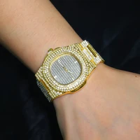 Men Women Hip Hop 16mm Iced Out Shiny Cuban Chain Necklace+Bracelet Set With Variety of Styles Personality Rhinestone Watch
