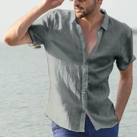 Men’s Casual Short Sleeve Shirt Street Wear Lapel Button Solid Color Cotton Linen Shirt for Men Vintage Vacation Blouse M-3XL