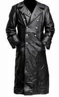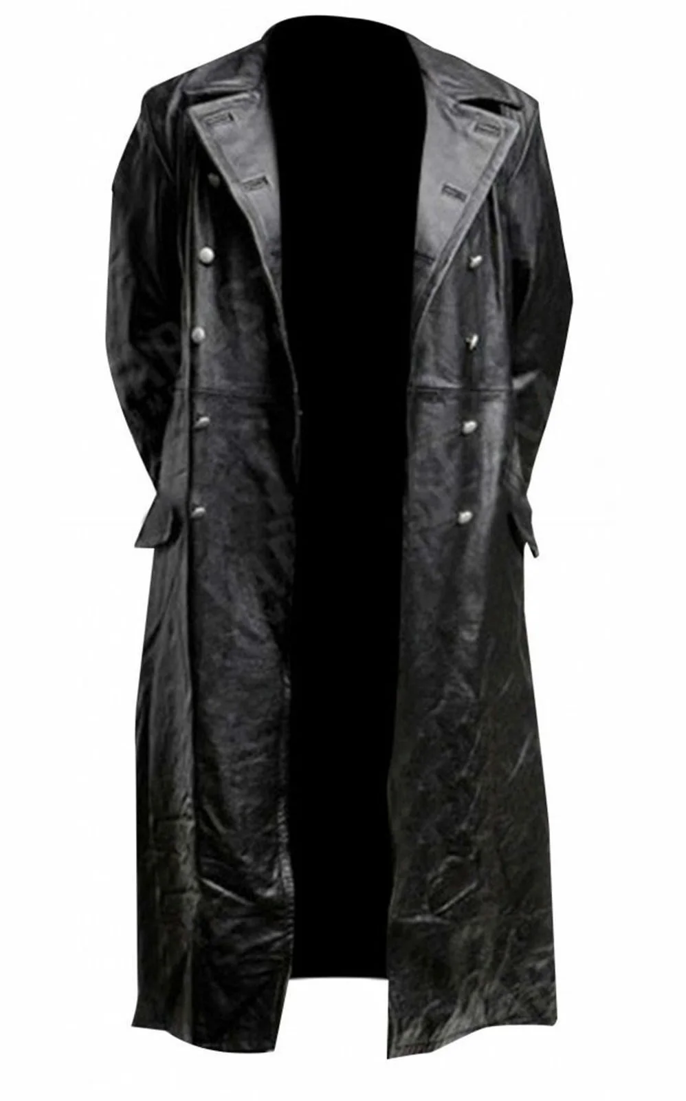 Men’s German Classic WW2 Military Uniform officer Black Leather Trench Coat