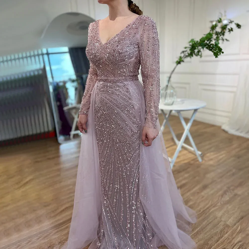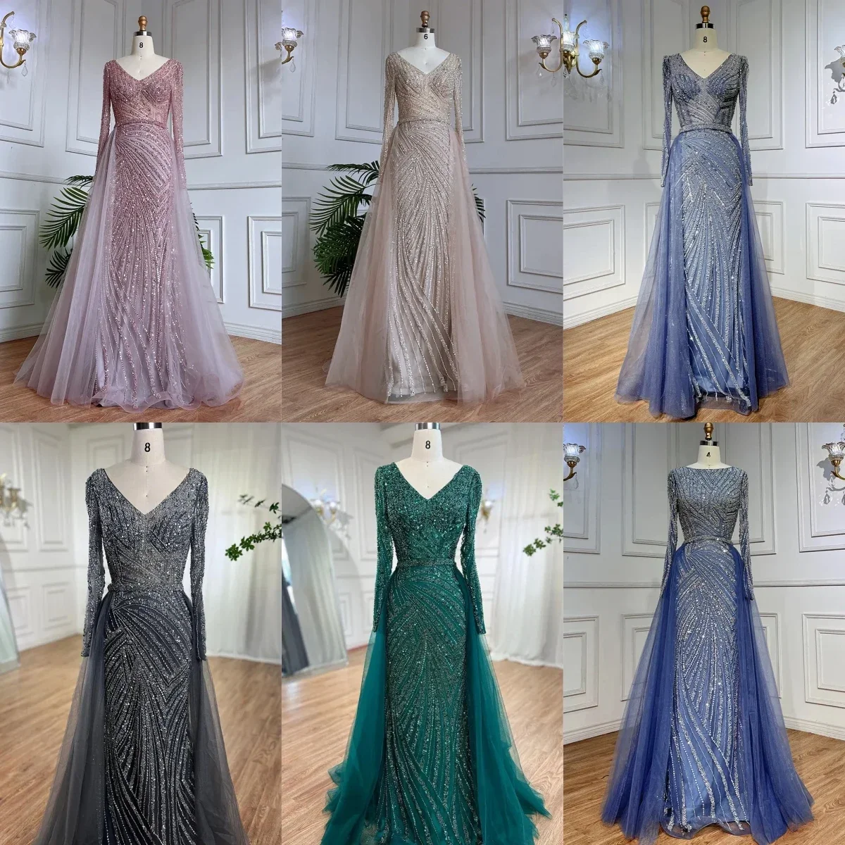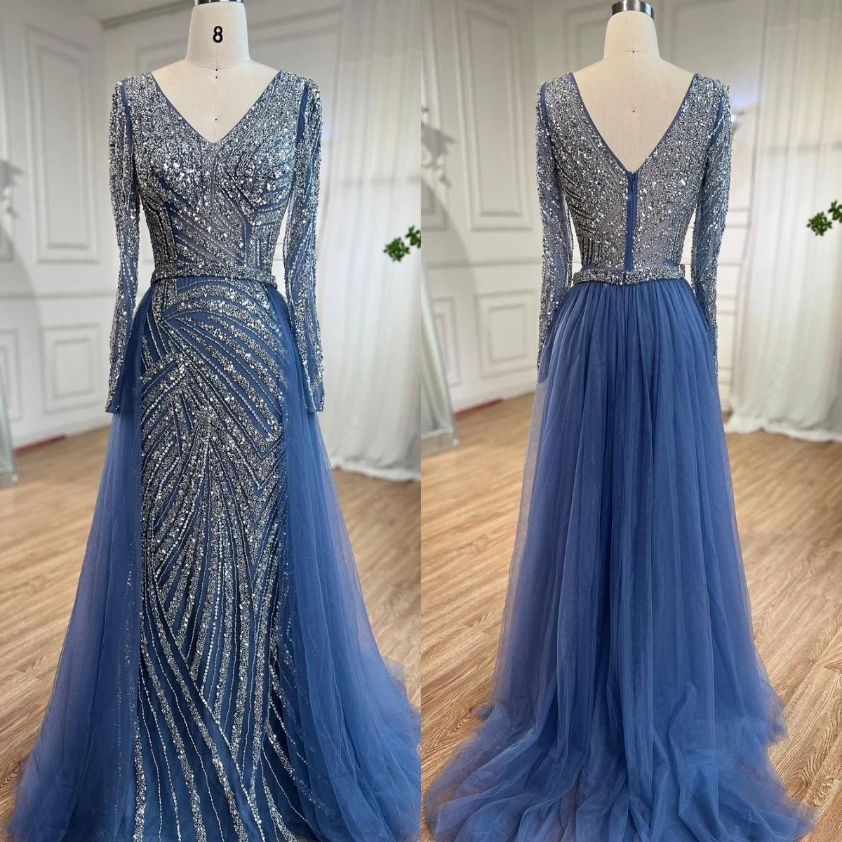 Mermaid Beaded Elegant Blue Luxury Evening Dresses Gowns For Women Muslim Party