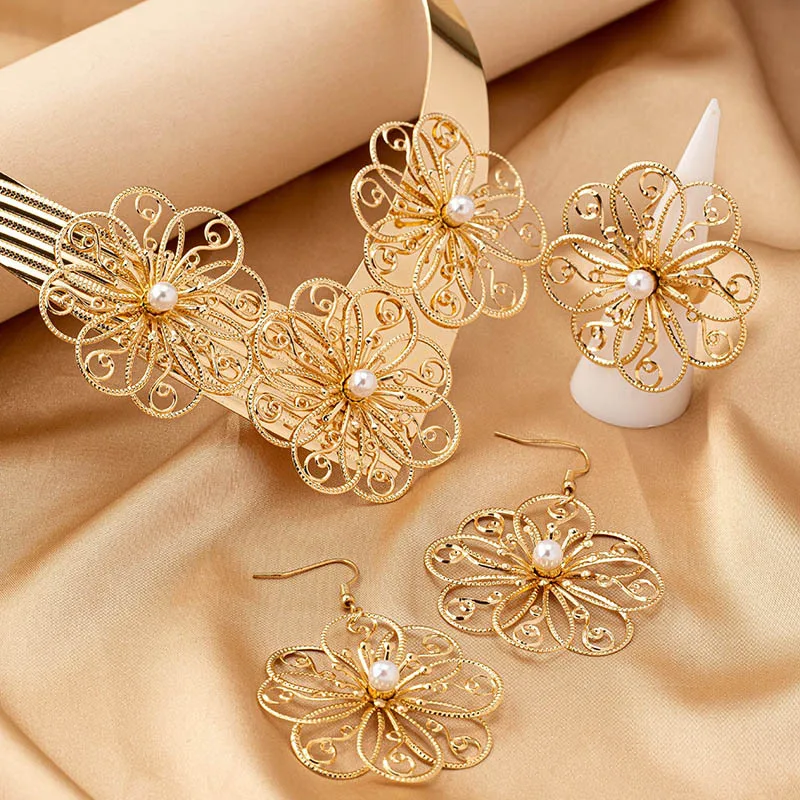 Gold Plated Jewelry Set Women Luxurious Necklace Earrings Bracelet Ring 4pcs Bride Wedding Party Jewelry Set Gift