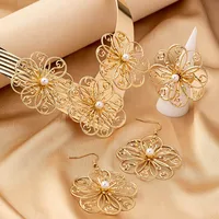 Metal Skeleton Flower Necklace, Earrings and Ring Set Simple Fashion Jewelry Accessories Hot Sale Party Gift New Style