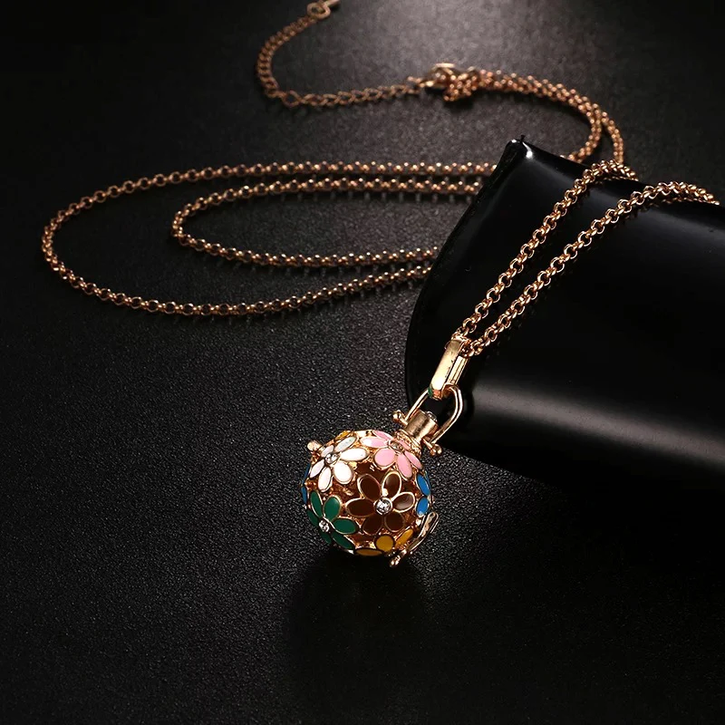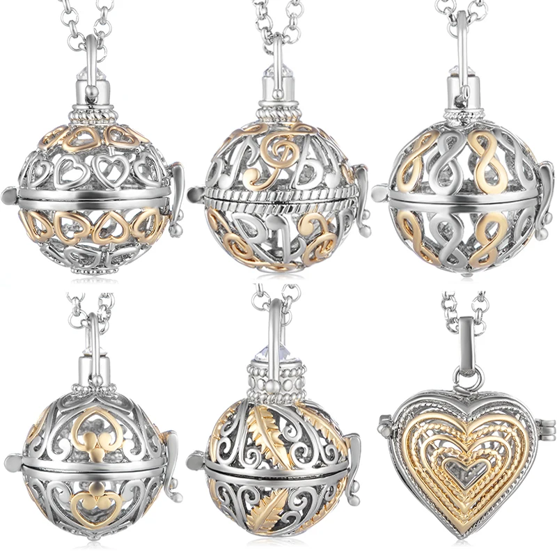 Mexico Chime Two-Color Feather Caller Locket Piano Ball Necklace Essential Oil Diffuser Perfume Musical Note Pendant New Jewelry