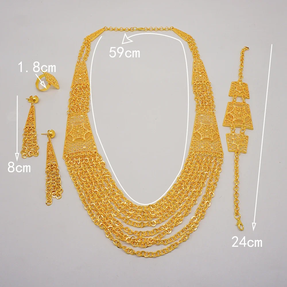 Middle East Golden Long Necklace with Tassel Jewelry Set for Women Tassel Earrings for Bridal Set Party Gift