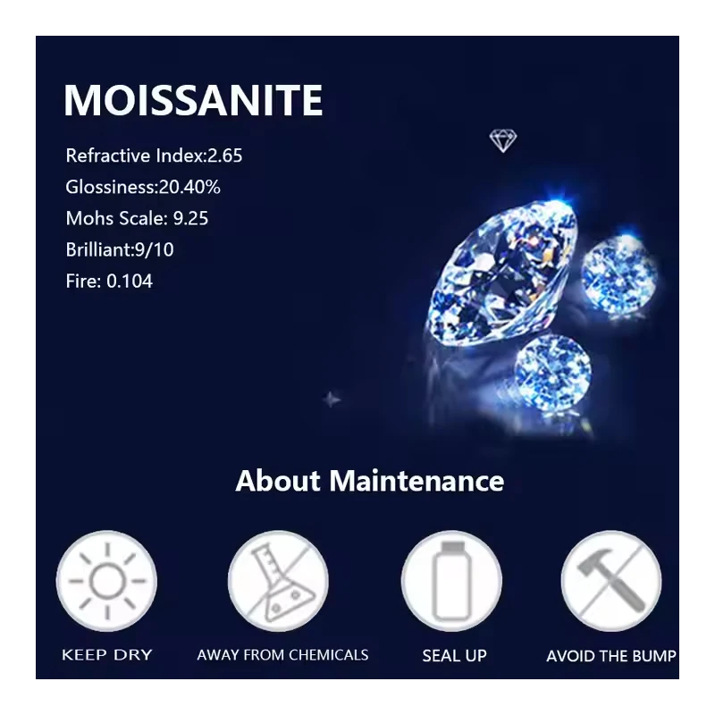 | 【Tips】Keep your moissanite necklace looking radiant by following simple care practices. Avoid contact with water, lotions, and perfumes to maintain its brilliance. Use a jewelry polishing cloth regularly to keep it looking as good as new. |
