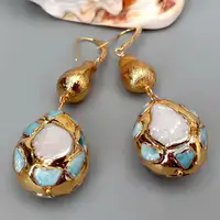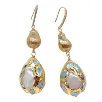 Be the first to review “Natural Cultured White Pearl Teardrop Shape Blue larimar Pave Brushed Bead Dangle Hook Earrings” Cancel reply