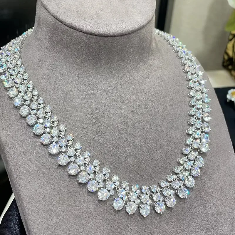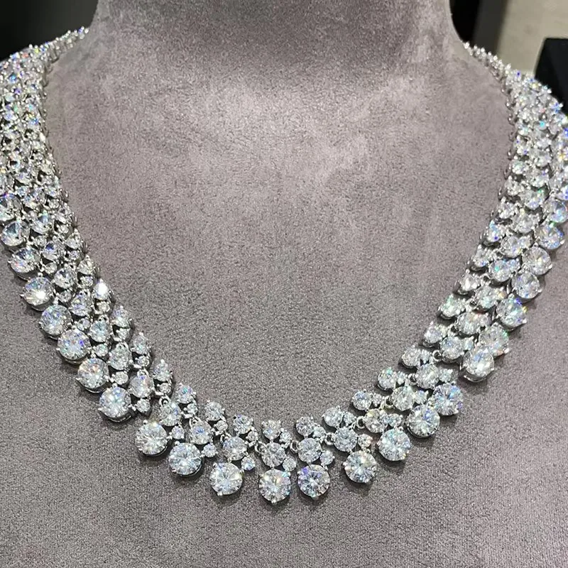 Natural true pearl brass plated platinum zircon stylish personality double tiered clavicle necklace