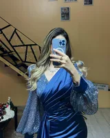 Be the first to review “Navy Evening Dresses Wedding Party Sexy Women V-Neck Long Sleeve Mermaid Satin Arab Fashion Celebrity Prom Gowns” Cancel reply