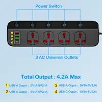 ① The Power Strip With 4 Universal outlets, 1.97M in Length, 3 USB-A Ports and 1 Type C Port,5 Power Switch.