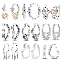 New 925 Sterling Silver Hot Moments Charm Hoop Earrings for Women Trendy Big Circle Fashion Silver Earrings Jewelry Making