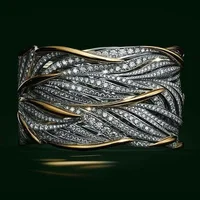 New Fashion Women's Finger Ring with CZ Stone Wiredrawing Effect Gold Color Wide Rings Luxury Female Jewelry Party