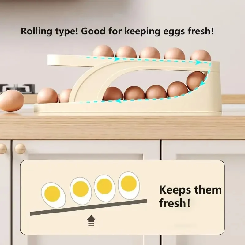 Features:Kitchen Automatic Scrolling Egg Rack Holder Storage Box Container Organizer Rolldown Refrigerator