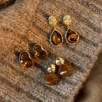 New Brown Resin Tiger Eye Stone Dangle Earrings for Women Fashion Silver Needle Earring Personality Melard Color Jewelry