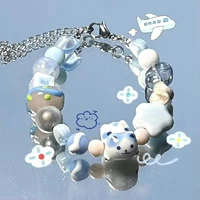 New Cute Cartoon Black Cat Heart Beads Bracelet for Women Sweet Cool Rhinestone Stars Trendy Korean Fashion Jewelry Gifts