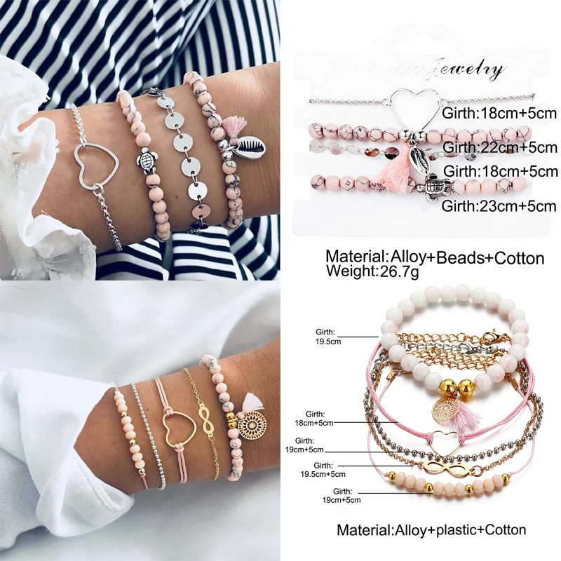 New Design Vintage Women Boho bracelets Set Moon Shell Heart Tortoise charm Beads chains Bangle for Women Bohemian Jewelry