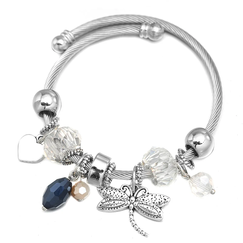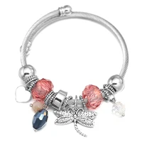 New Dragonfly Stainless Steel Trendy Beading Bracelet Jewelry 6 Colors Closure Bangles Bracelet for Women Simplicity Accessories