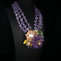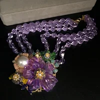New European and American high quality medieval jewelry fresh sweet purple glass multi-layer necklace hand-woven high-grade