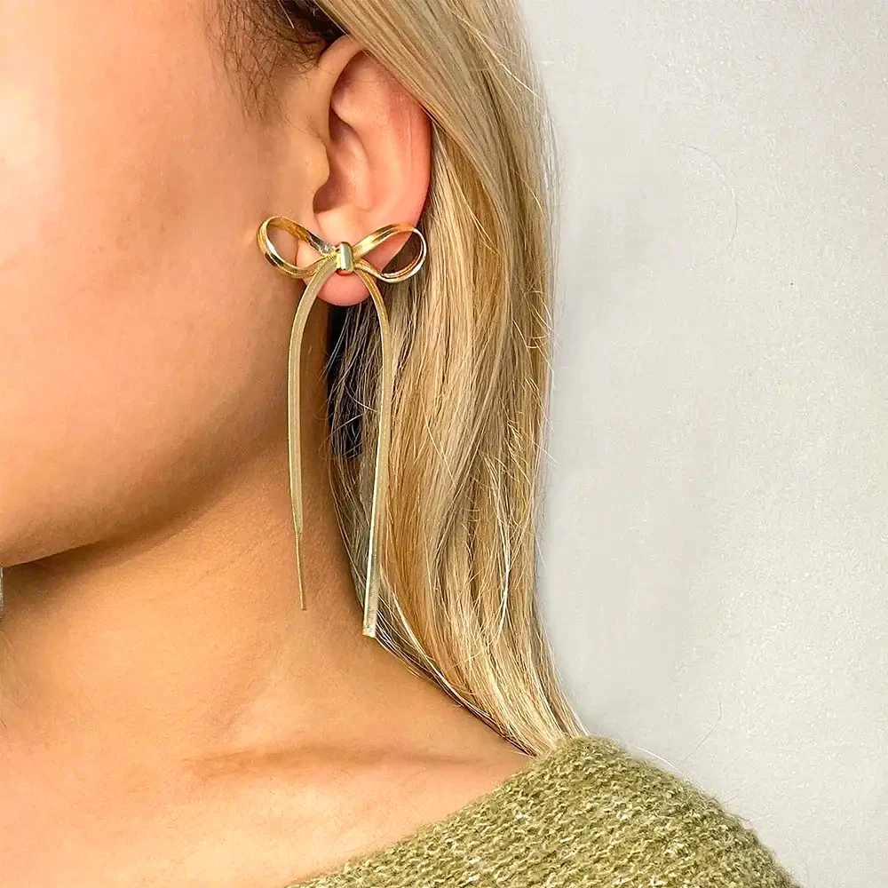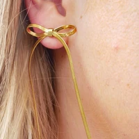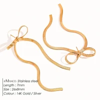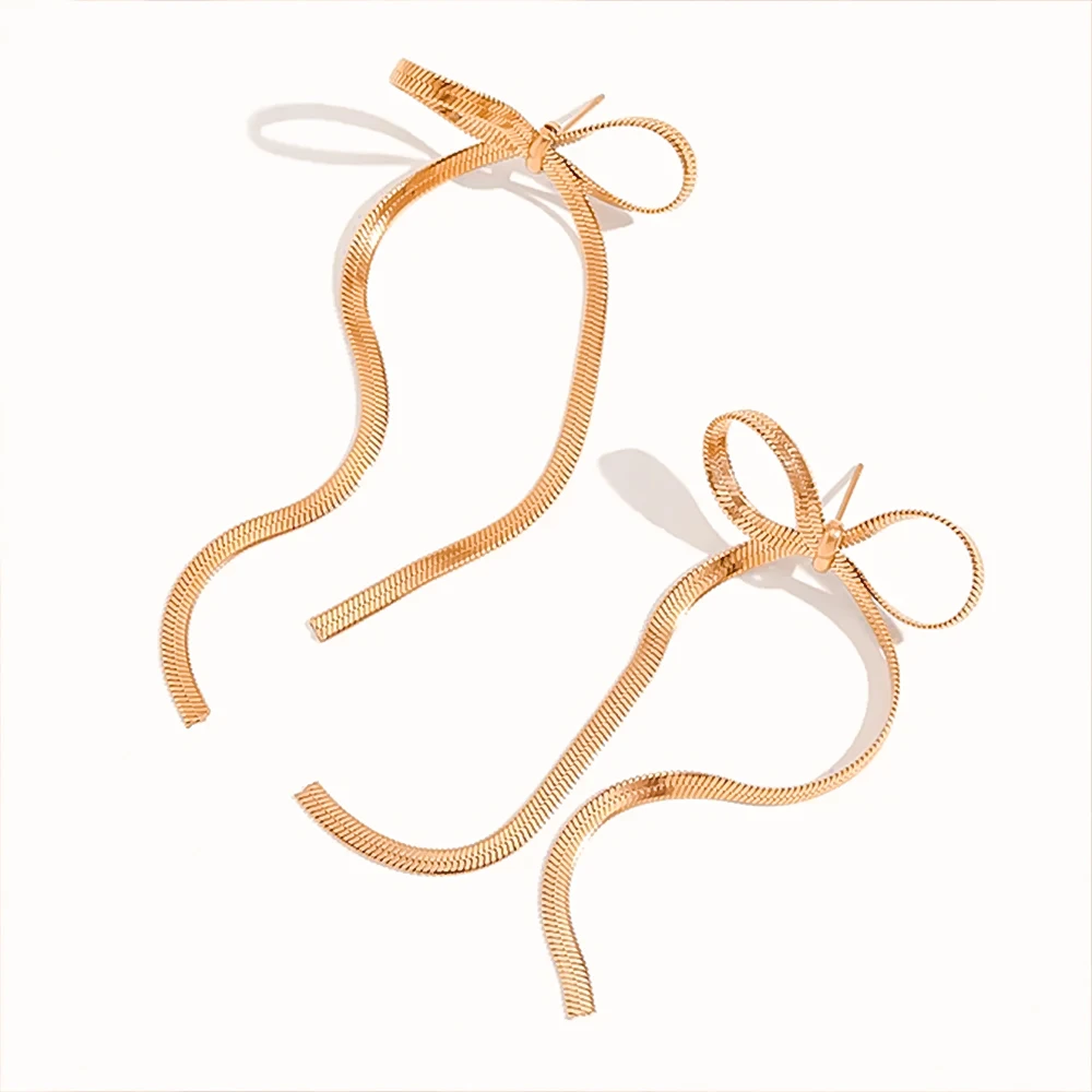 New Fashion Gold Color stainless steel Flat Snake Chain Knot Bow Earrings for Women Bowknot Long Tassel Earring Jewelry