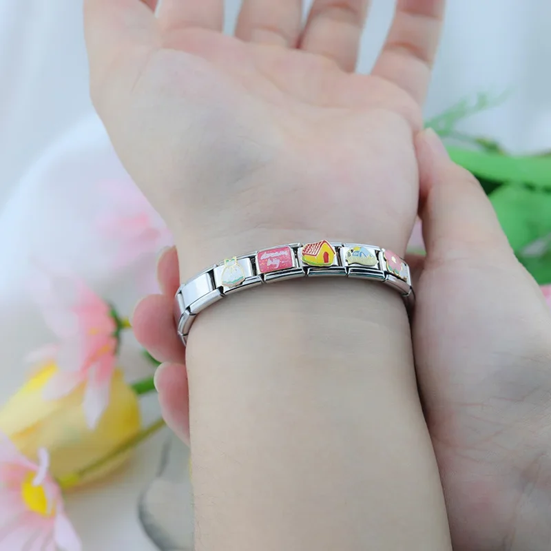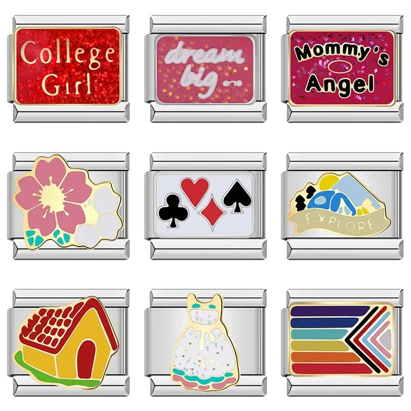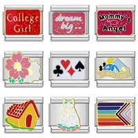 New Fashion Shiny Flower House Skirt Charm Italian Links Fit 9mm Bracelet Stainless Steel Making Jewelry