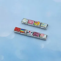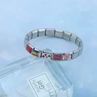 Fashion Heart Elliptic Rectangle CZ Charm Italian Links Fit 9mm Bracelet Stainless Steel Making Jewelry