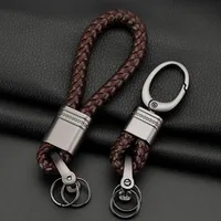 New Hand-Woven Leather Car Key Ring Men Women Rope Key Chain Waist Keychains Charm Metal Key Holder Gift Jewelry