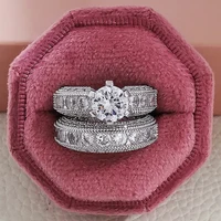 New Luxury Silver Color Luxury Big Wedding Rings Set for Bridal Women Engagement Finger Party Gift Designer Jewelry