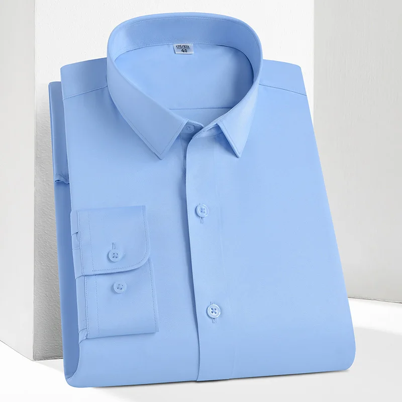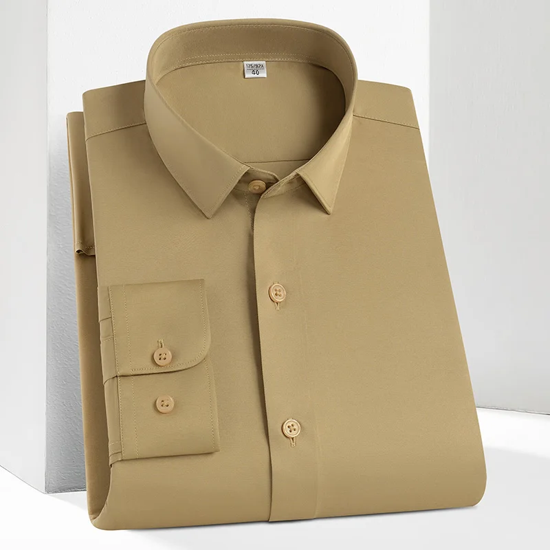 New men’s social shirts long sleeve smooth comfort soft casual without pocket solid Dress shirt regular fit wrinkle Free Man Top
