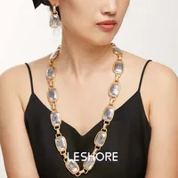 Luxury Blue Green Pearl Cubic Zirconia Tassels Necklace Earrings Ladies Jewellery Set Party Wedding Dress Accessories Gift
