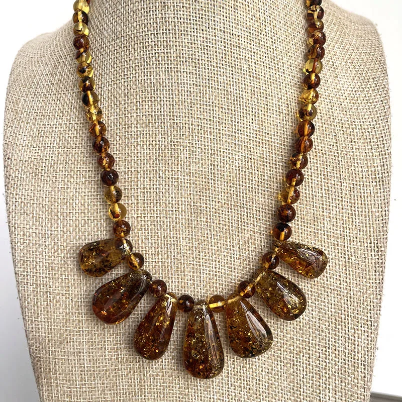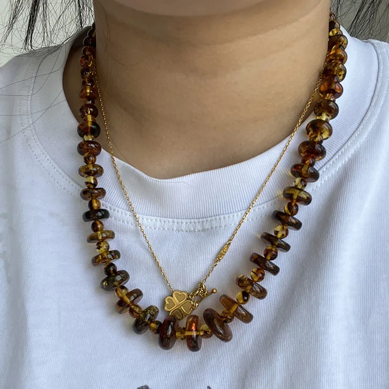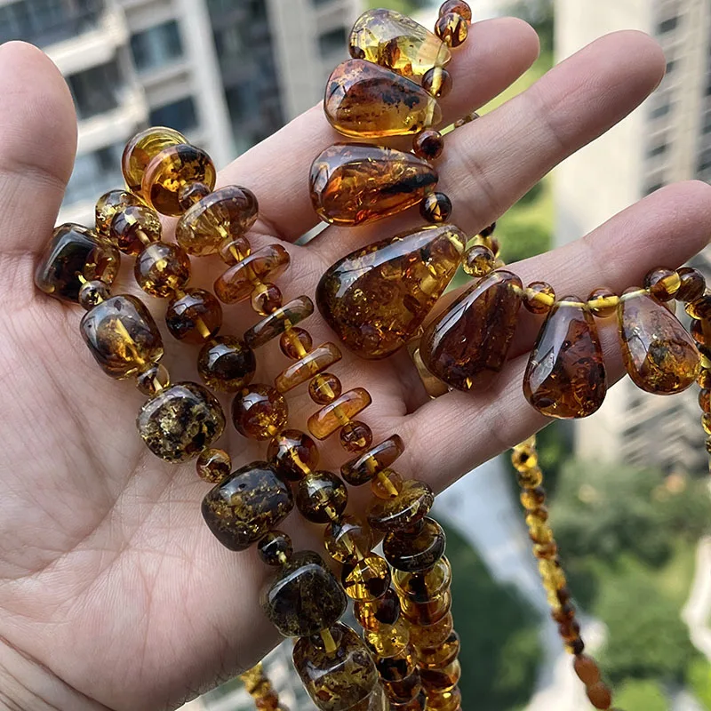 New Natural Amber Necklace for Women Gift Europe Baltic Floral Beads Gorgeous 100% Original Real Designer Jewelry