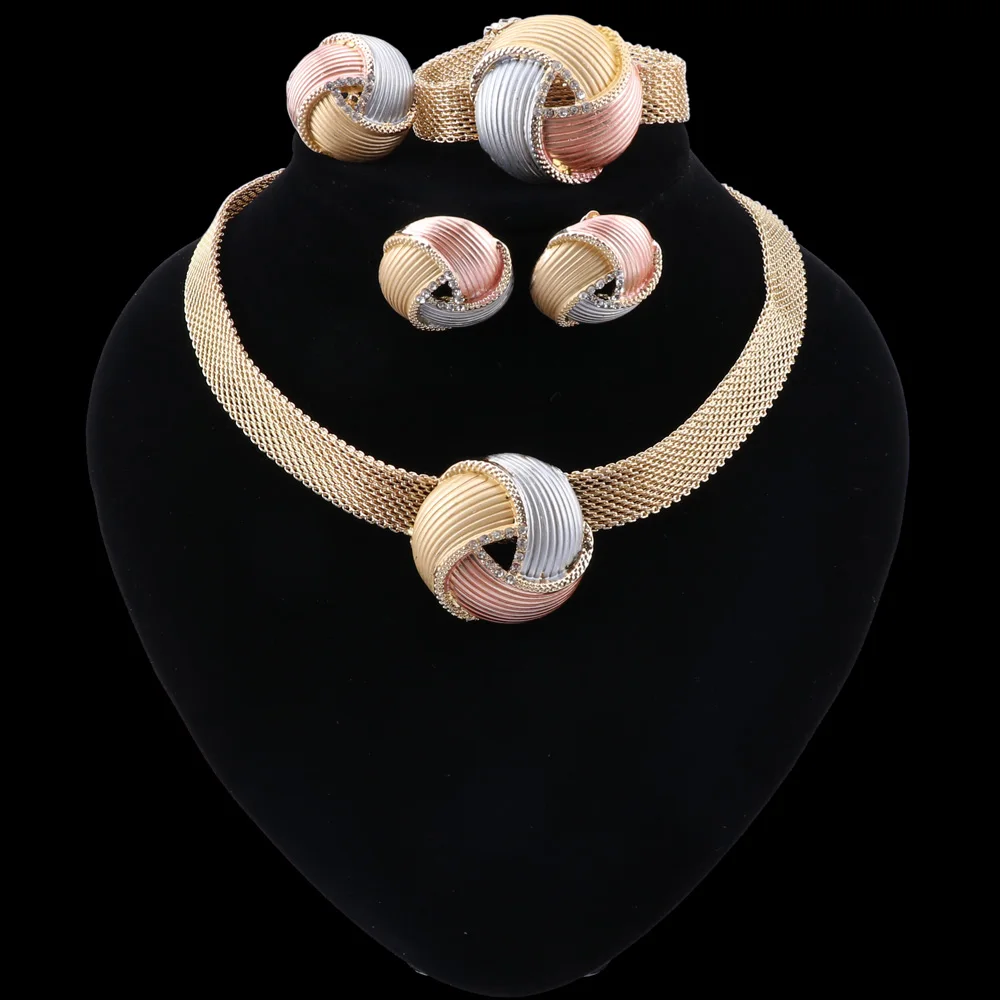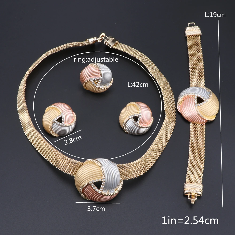 Nigerian Women Wedding Jewelry Sets Dubai Gold color Jewelry Sets African Women Necklace Earrings Bracelet Jewellery