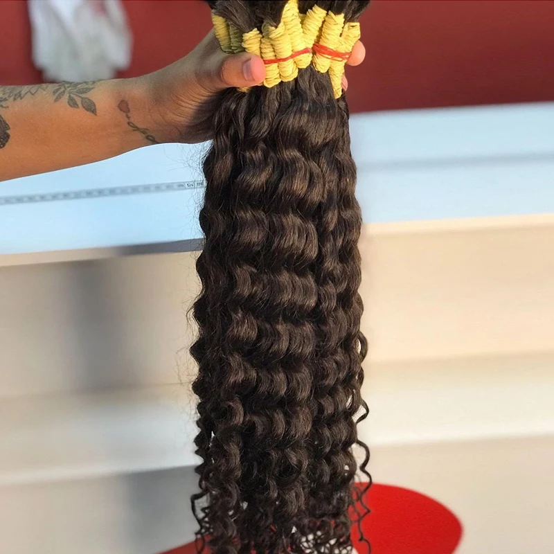 No Weft Human Hair Bulk Extension Virgin Human Hair Deep Curly 10A Bulk Hair Weaving For Braiding 100% Unprocessed 18-30inches