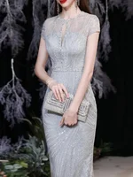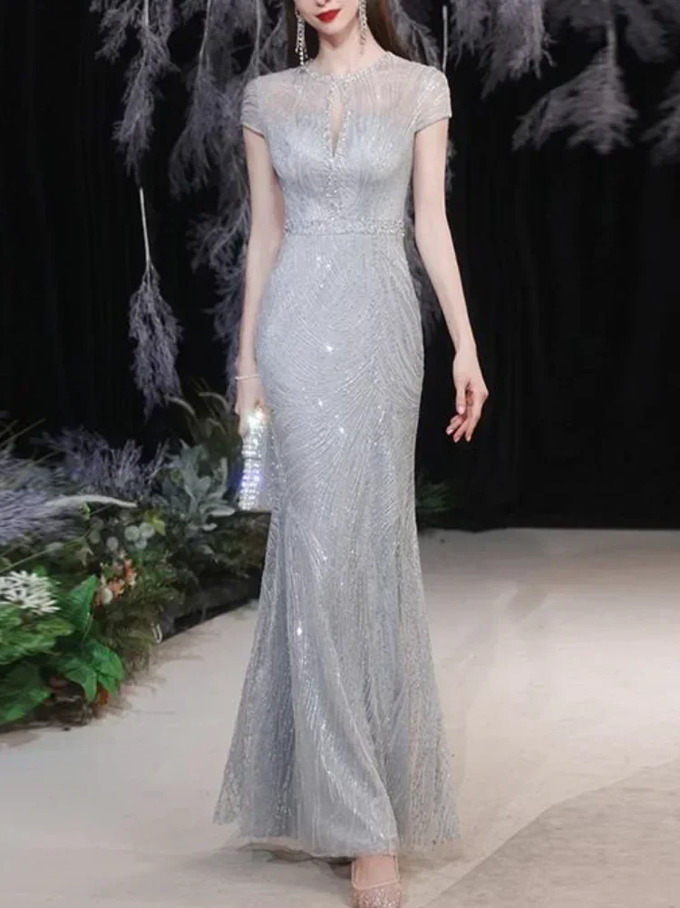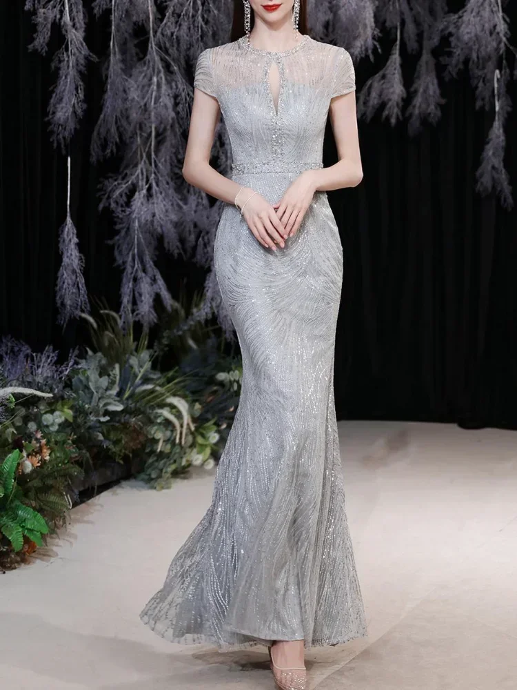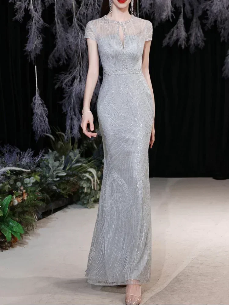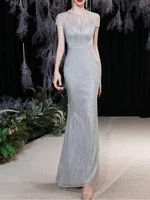 O-neck Sequined Slim Fit Simple Elegant Evening Dresses Sleeveless Wedding Party Vestidos Temperament Elegant Trumpet Prom Dress