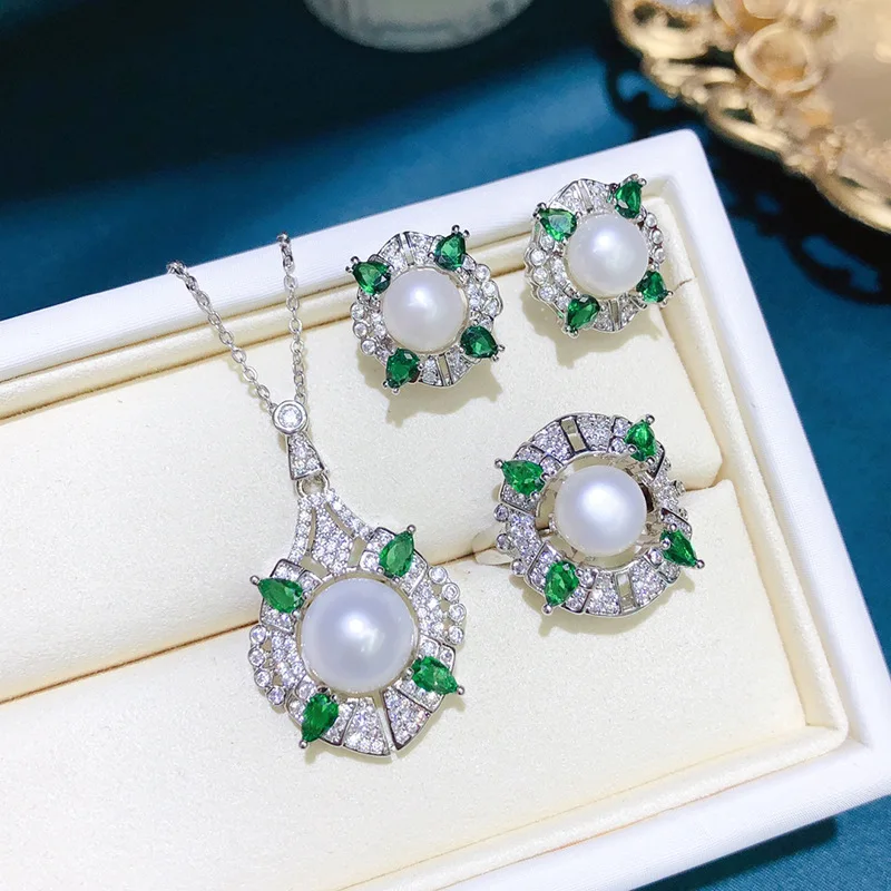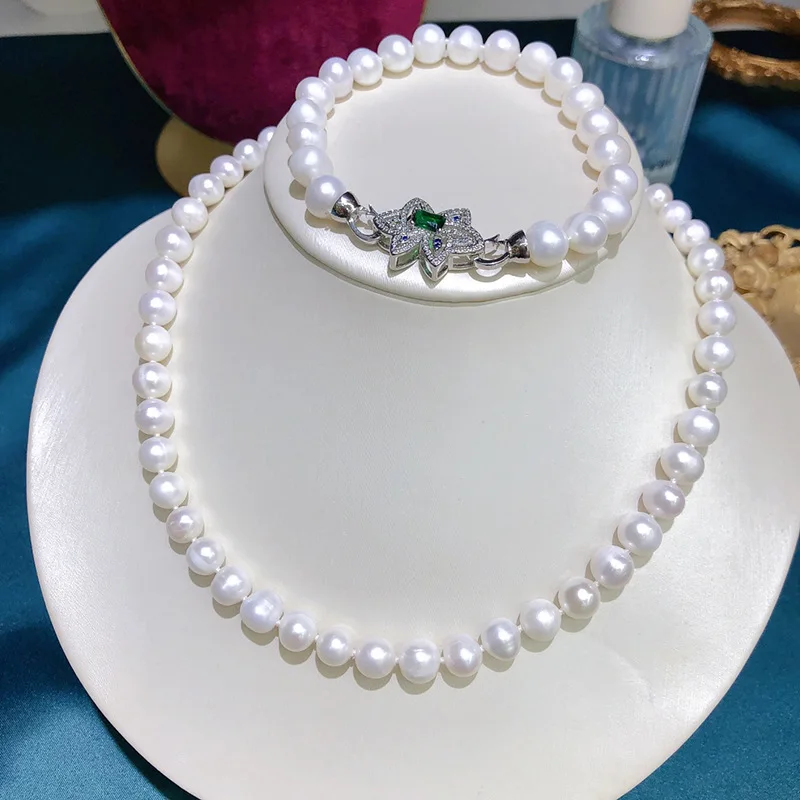 One set freshwater pearl white near round 8-9mm necklace bracelet earring ring pendant