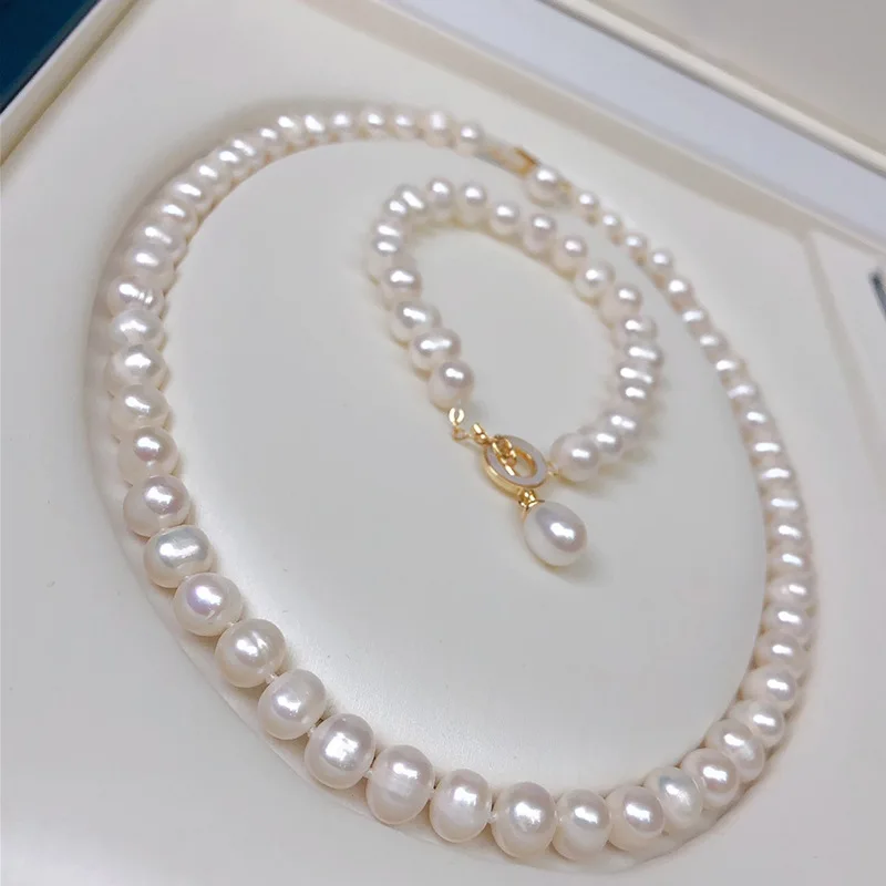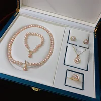 One Set freshwater pearl white pink near round shell cirque clasp 8-9mm necklace bracelet earring ring pendant