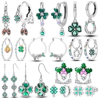 Original 925 Sterling Silver Green Clover Ladybug Earrings Women Zircon Ear Studs Hoop Earring Anniversary Jewelry Gift