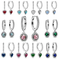 925 Silver Hoop Earrings for Woman Pendientes Zircon Heart Shape Star Eardrop Original Earring Fashion Jewelry