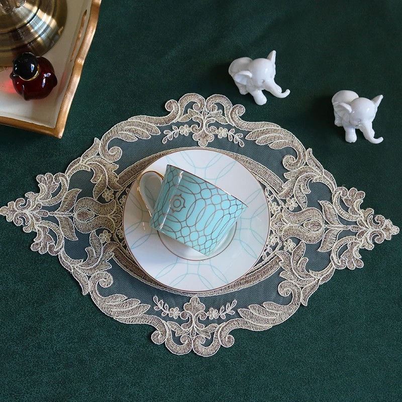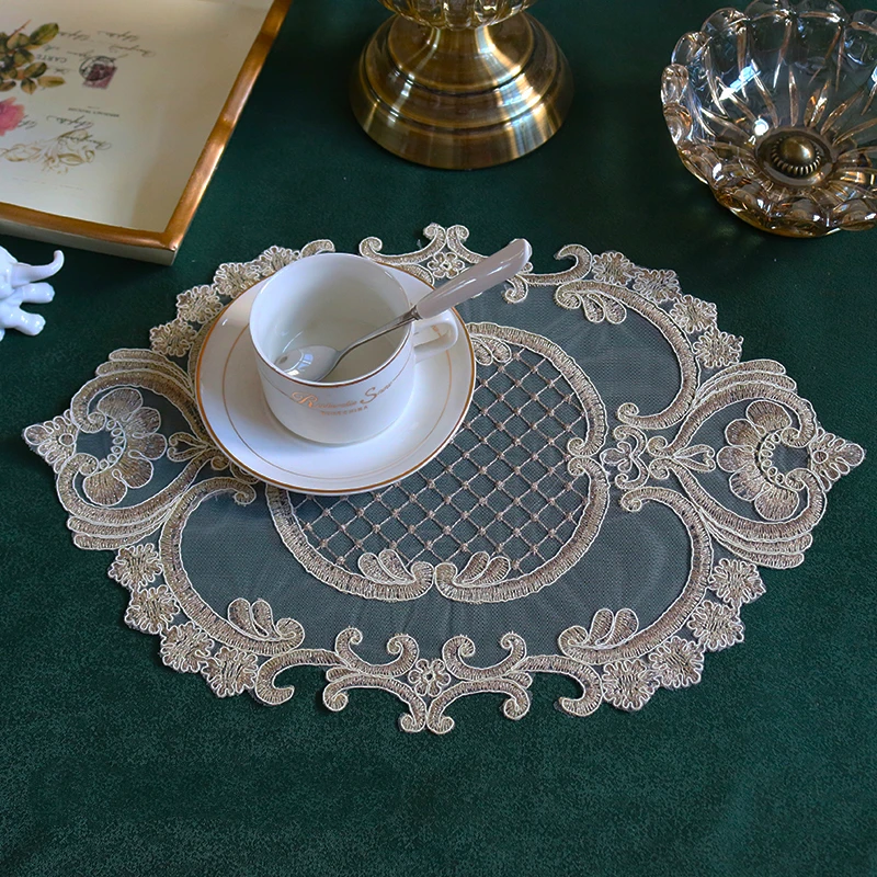 Oval 28x42cm European Luxury Lace Embroidered Restaurant Velvet Placemat Small Balcony Coffee Cup Table Mat Vase Pad Coaster