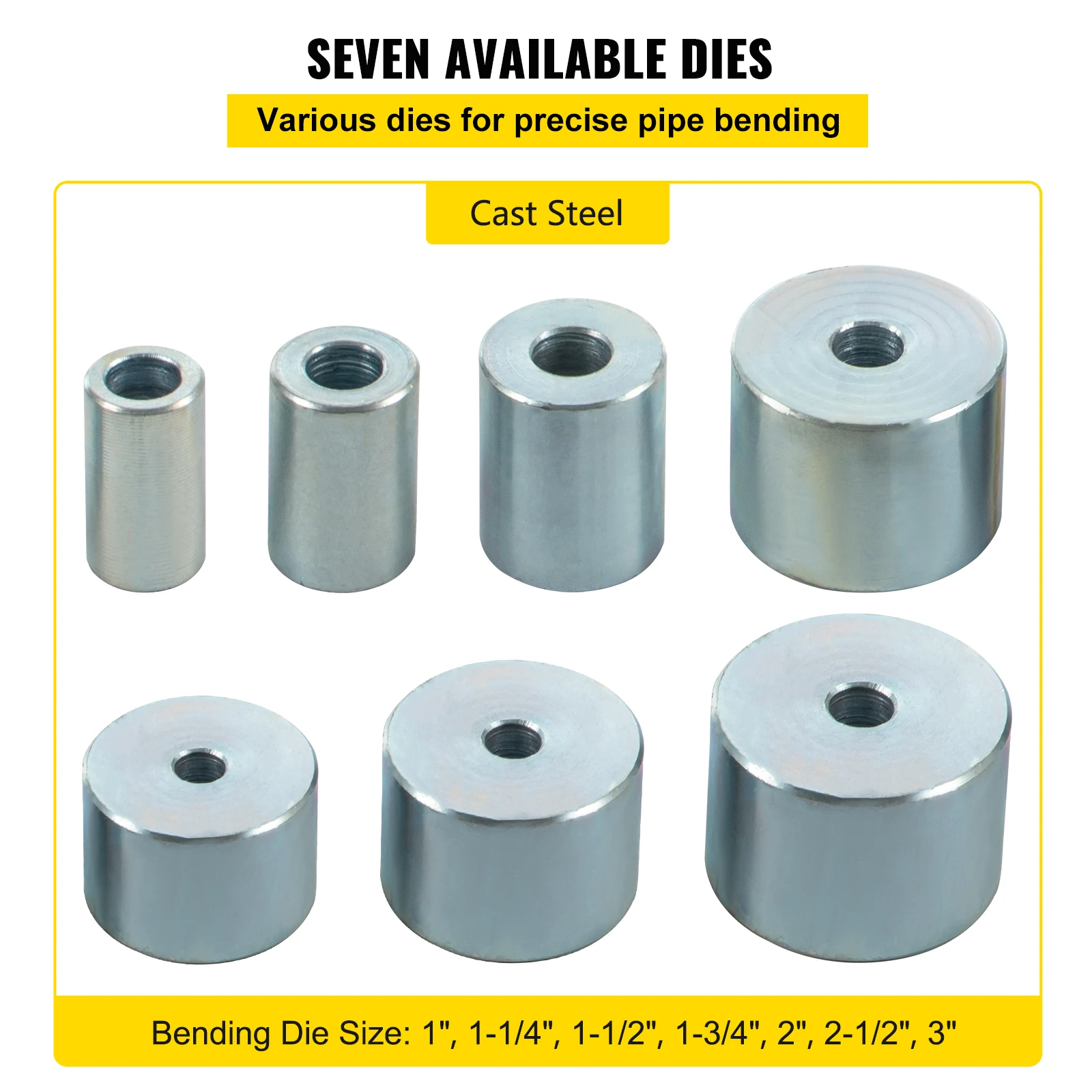 Pipe Bender YP-9 Manual Bench Steel Tube Bending Kit with 7Dies 1-3in Multifunction Compact Flat Bar Rod Brake Bends Tool