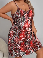 Plus Size Casual Nightdress, Women’s Plus Comfort Soft Leopard Heart Print V Neck Cami Dress