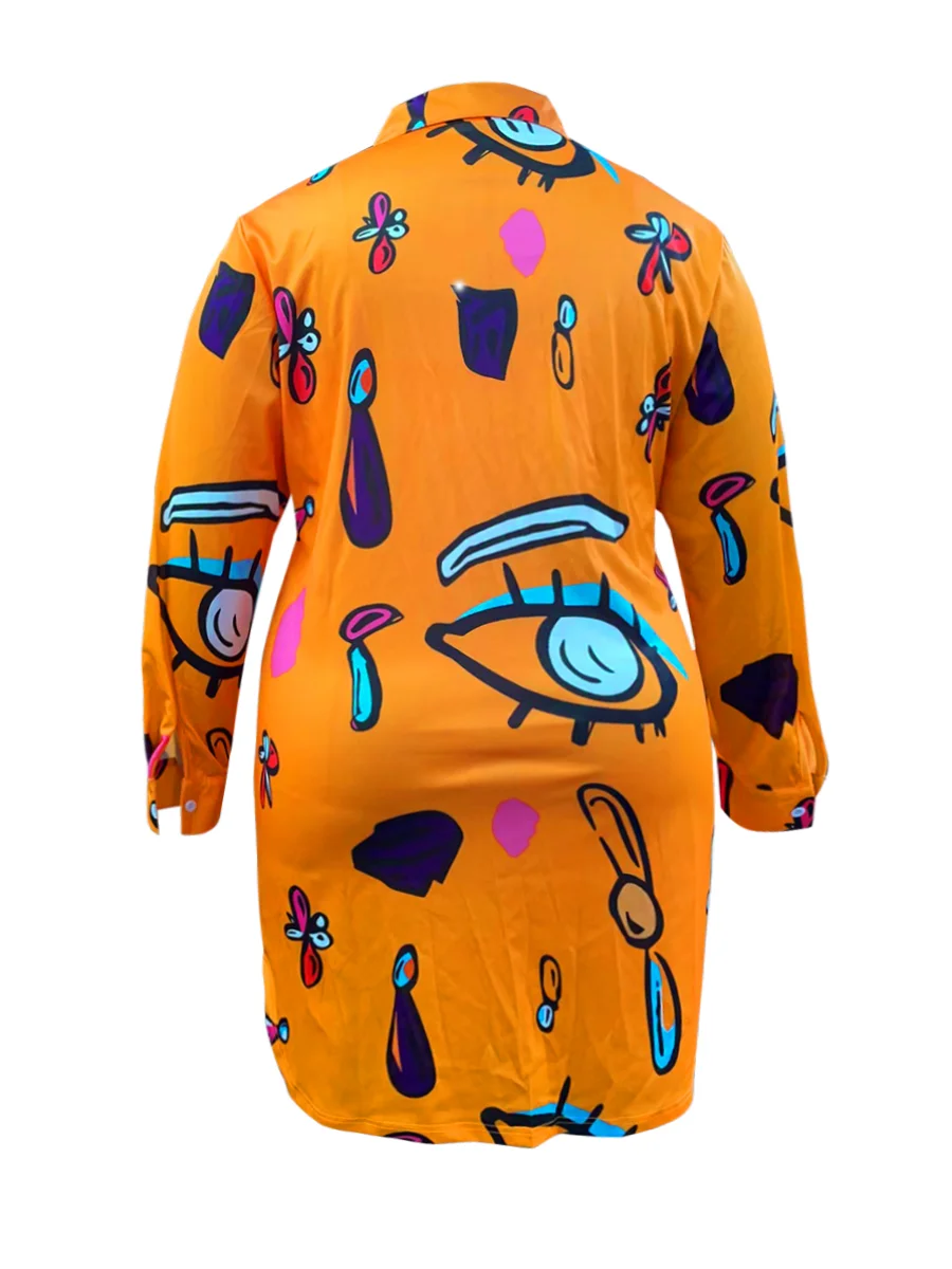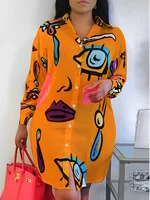 Plus Size dresses Casual Print Shirt Dress Autumn Casual Loose Dress Women Elegant midi dress long sleeve Fashion shirt dress