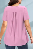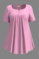 Plus Size Fashion A Line Women Blouse Casual Purple Pleated Decorative Button Round Neck T-Shirt Elegant Summer Short Sleeve Top