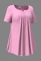Be the first to review “Plus Size Fashion A Line Women Blouse Casual Purple Pleated Decorative Button Round Neck T-Shirt Elegant Summer Short Sleeve Top” Cancel reply