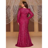 Large Size Evening Dresses Fashion Female Sequin Draped Sleeve Birthday Wedding Party Dresses Plus Size Women Long Elegant Dress