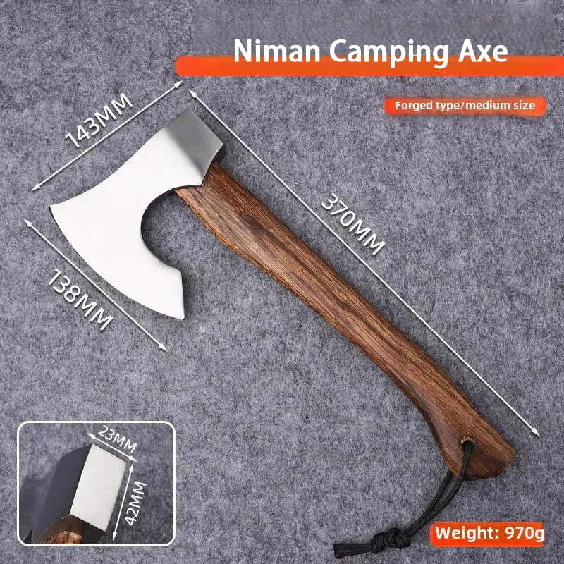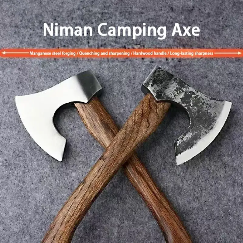 Portable outdoor camping hand axe – Hand-forged multi-functional wood-splitting and bone-chopping axe – Emergency battle axe