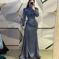 Elegant Off Shoulder Arabic Mermaid Beige Evening Dress for Women Wedding Party Dubai Long Formal Gowns