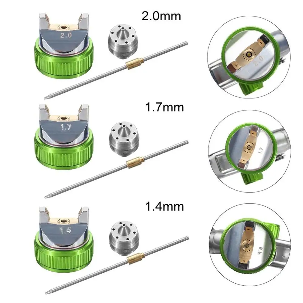 3.Multi-purpose Precision Airbrush: With 3pcs stainless steel fluid needle and nozzle (1.4mm/1.7mm/2.0mm), corrosion resistant.